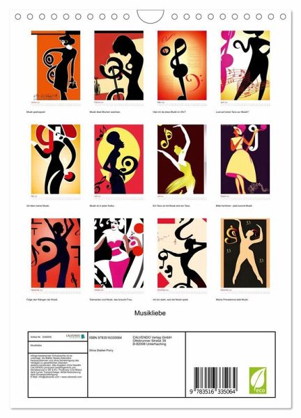 QUALITÄT - Hochwertiger Fotokalender mit 12 wunderschönen Motiven auf lichtbeständigem Bilderdruckpapier, robuste Spiralbindung mit Aufhängebügel.NACHHALTIG - deutliche Abfallreduzierung durch bedarfsgerechte Einzelstückfertigung, umweltfreundliches FSC-zertifiziertes Papier, Produktion in Deutschland, klimabewusste Logistik.PERFEKTES GESCHENK - Kalender für Freunde und Familie, für Kinder und Erwachsene, jung und alt, zu Weihnachten, Geburtstag oder zwischendurch.VIELFALT - Bildkalender in verschiedenen Formaten, z.B. DIN A5, DIN A4, DIN A3 sowie DIN A2. Ob Naturmotiv, Gemälde oder Fotos, ideal für ein persönliches Wohlfühlambiente.Musik begleitet uns im Leben von Autor(in): Silvia Siebler-Ferry