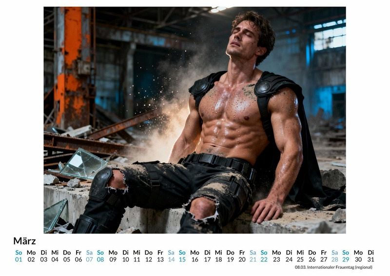 Der Staub legt sich, die Schlacht ist geschlagen. Zurück bleiben die Sieger, gezeichnet vom Kampf. Ihre Anzüge sind zerrissen, doch ihre Entschlossenheit ist ungebrochen. Der Kalender "Muskelbepackte Superhelden" zeigt die Momente nach dem heroischen Einsatz, in denen die wahre Stärke sichtbar wird. Dieser Kalender ist eine passende Wahl für: * Liebhaber von Superhelden Erzählungen, die eine andere Perspektive suchen. * Alle, die die Ästhetik trainierter Körper schätzen. * Sammler von Kalendern mit einem unkonventionellen Thema. Jeder Monat präsentiert einen Helden in einer Pose, die sowohl Erschöpfung als auch Triumph ausstrahlt. Der Fokus liegt auf den Details: zerschlissene Stoffe, die den Blick auf stählerne Muskeln freigeben, und der Ausdruck von Charakterstärke nach einer überstandenen Prüfung. Diese Motive wurden nicht fotografiert, sondern durch komplexe Rechenprozesse zum Leben erweckt und bieten eine Darstellung von Kraft und Verletzlichkeit. Was der Kalender bietet: * Zwölf Monatsblätter mit unterschiedlichen Heldenmotiven. * Ein praktisches Kalendarium für die Jahresplanung. * Ein Wandkalender, der als Blickfang in jedem Raum dient. Dieser Kalender ist eine Hommage an die unbezwingbare Kraft, die auch nach dem härtesten Kampf bestehen bleibt. Er begleitet durch das Jahr mit Darstellungen von Helden, die ihre Spuren des Kampfes tragen. Es lohnt sich, einen Blick auf die einzelnen Monatsmotive zu werfen und die Helden in ihrer ganzen Stärke zu entdecken.