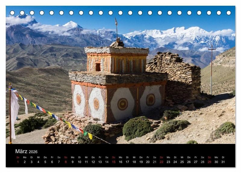 März: Südblick auf Chörten mit Annapurna I (8091 m)