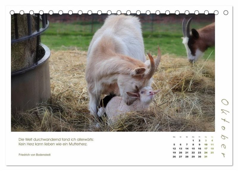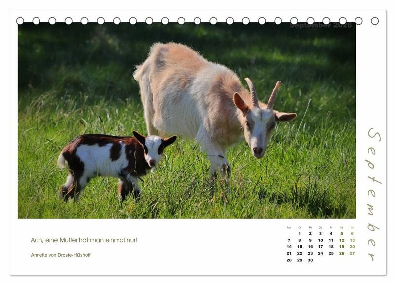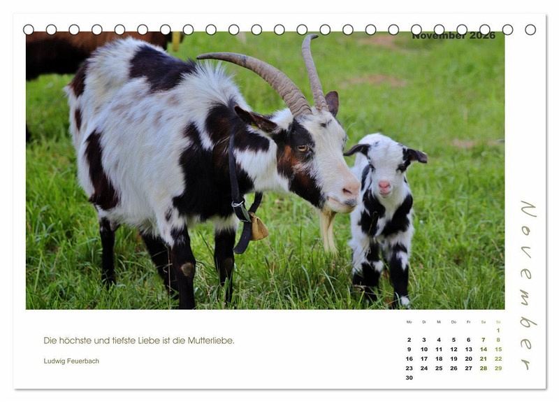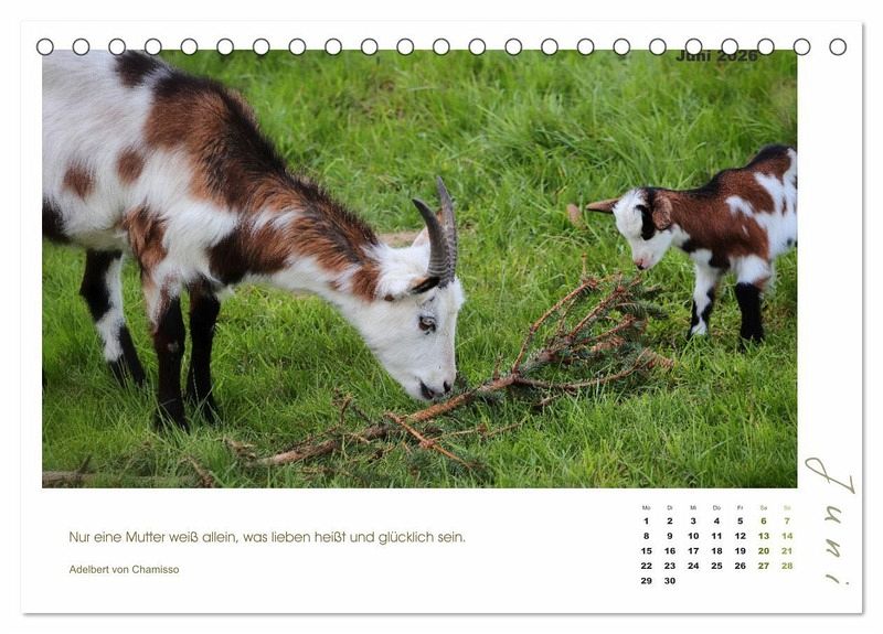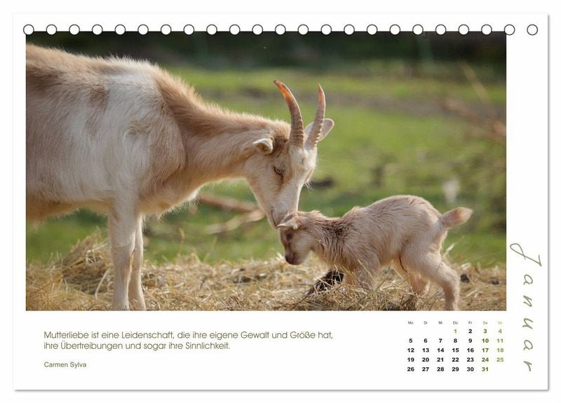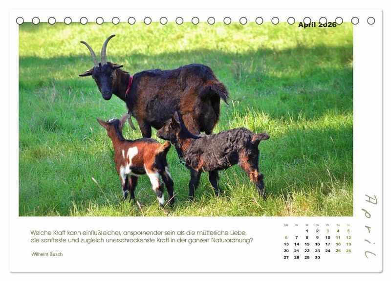 Mutterliebe geht über alles - und so ist auch bei den Ziegen und ihren Zicklein. Freuen Sie sich jeden Monat auf ein bezauberndes Foto einer Ziegenmama mit ihren Lämmern, begleitet von Zitaten bekannter Schriftsteller und Philosophen.