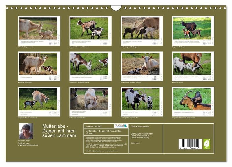 QUALITÄT - Hochwertiger Fotokalender mit 12 wunderschönen Motiven auf lichtbeständigem Bilderdruckpapier, robuste Spiralbindung mit Aufhängebügel.NACHHALTIG - deutliche Abfallreduzierung durch bedarfsgerechte Einzelstückfertigung, umweltfreundliches FSC-zertifiziertes Papier, Produktion in Deutschland, klimabewusste Logistik.PERFEKTES GESCHENK - Kalender für Freunde und Familie, für Kinder und Erwachsene, jung und alt, zu Weihnachten, Geburtstag oder zwischendurch.VIELFALT - Bildkalender in verschiedenen Formaten, z.B. DIN A5, DIN A4, DIN A3 sowie DIN A2. Ob Naturmotiv, Gemälde oder Fotos, ideal für ein persönliches Wohlfühlambiente.Ziegenmütter, Zicklein und Zitate von Autor(in): Sabine Löwer