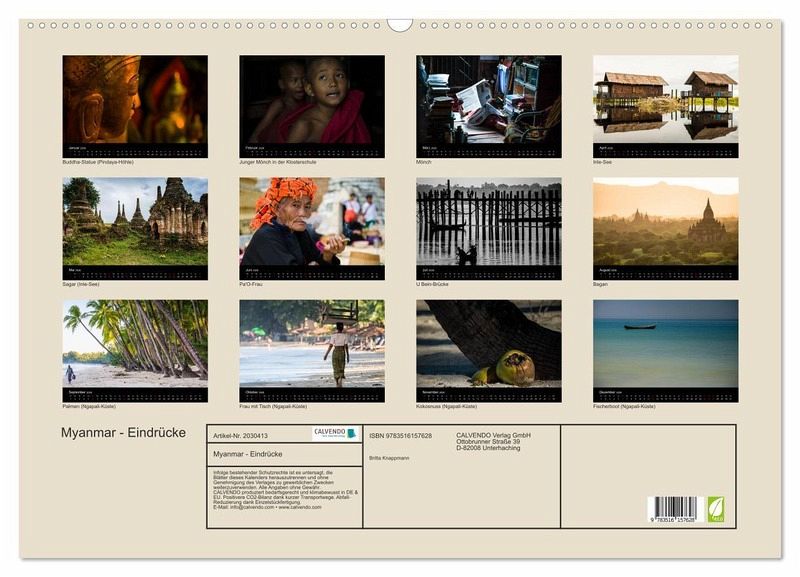 QUALITÄT - Hochwertiger Fotokalender mit 12 wunderschönen Motiven auf lichtbeständigem Bilderdruckpapier, robuste Spiralbindung mit Aufhängebügel.NACHHALTIG - deutliche Abfallreduzierung durch bedarfsgerechte Einzelstückfertigung, umweltfreundliches FSC-zertifiziertes Papier, Produktion in Deutschland, klimabewusste Logistik.PERFEKTES GESCHENK - Kalender für Freunde und Familie, für Kinder und Erwachsene, jung und alt, zu Weihnachten, Geburtstag oder zwischendurch.VIELFALT - Bildkalender in verschiedenen Formaten, z.B. DIN A5, DIN A4, DIN A3 sowie DIN A2. Ob Naturmotiv, Gemälde oder Fotos, ideal für ein persönliches Wohlfühlambiente.Myanmar- Die Zeit scheint stehen geblieben zu sein ... von Autor(in): Britta Knappmann