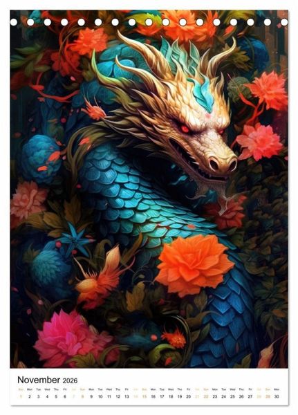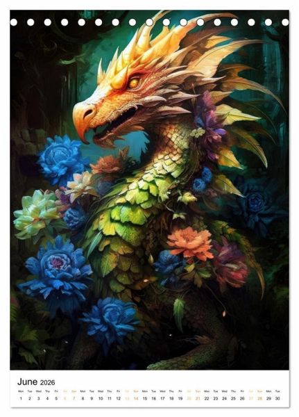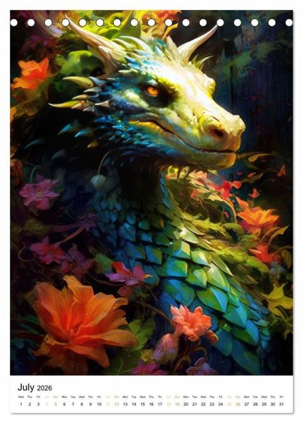 QUALITY - High-quality photo calendar with 12 beautiful images on light-resistant paper, robust spiral binding.SUSTAINABLE - Significant waste reduction due to print-on-demand production, environmentally friendly FSC-certified paper, produced locally, climate-conscious logistical processes.PERFECT GIFT - calendars for friends and family, for children, all ages and all occasions, from Christmas to birthdays and everything in between.LOTS OF CHOICE - Wall calendars in different sizes (DIN A4 and DIN A3), for any topic and personal taste, featuring photography, painting and illustrations.Discover the enchanting world of dragons surrounded by lush flowers in this captivating calendar that will take you on an unforgettable journey through imagination and art. von Autor(in): JBJart