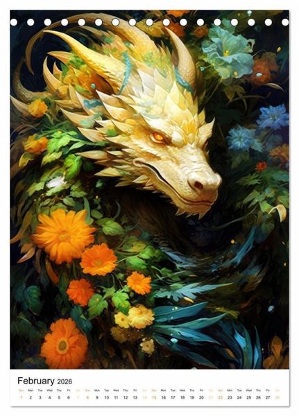 Immerse yourself in the captivating world of Mystical Drakes, where majestic dragons intertwine with the beauty of blooming flowers, creating a mesmerizing fusion of myth and nature. This enchanting calendar showcases twelve stunning digital paintings, each portraying a unique dragon adorned with vibrant petals. With Mystical Drakes hanging on your wall, you will embark on a year long journey through a realm where the mystical allure of dragons meets the delicate elegance of floral art, making it a must have for dragon enthusiasts and art lovers alike.