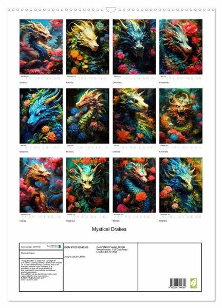 QUALITY - High-quality photo calendar with 12 beautiful images on light-resistant paper, robust spiral binding with hanger.SUSTAINABLE - Significant waste reduction due to print-on-demand production, environmentally friendly FSC-certified paper, produced in the UK, climate-conscious logistical processes.PERFECT GIFT - calendars for friends and family, for children, all ages and all occasions, from Christmas to birthdays and everything in between.LOTS OF CHOICE - Wall calendars in different sizes (DIN A4 and DIN A3), for any topic and personal taste, featuring photography, painting and illustrations.Discover the enchanting world of dragons surrounded by lush flowers in this captivating calendar that will take you on an unforgettable journey through imagination and art., author: JBJart