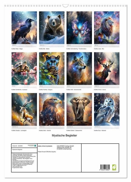 Erleben Sie die kraftvolle Energie der Natur durch kunstvoll gestaltete Bilder, jedes Monatsbild sorgfältig ausgewählt, um die einzigartigen Eigenschaften und die tiefe Symbolik jedes Krafttiers zu reflektieren.