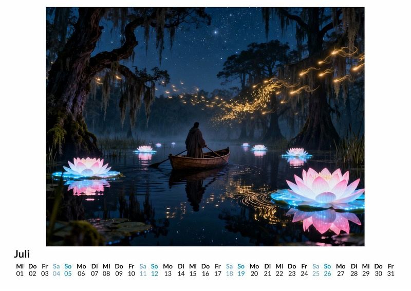 Hinter dem Schleier unserer Welt verbergen sich Reiche voller Magie und Wunder. Der Kalender "Mystische Fantasy-Welten" öffnet jeden Monat ein Fenster zu diesen verborgenen Orten, an denen uralte Mythen lebendig werden. Dieser Kalender ist eine ideale Wahl: Für Liebhaber von Fantasy-Geschichten und epischen Sagen. Für alle, die von Drachen, Feen und anderen Fabelwesen fasziniert sind. Für jene, die ihre Wände mit einem Hauch von Magie schmücken möchten. Jedes Monatsblatt präsentiert eine eigene Szene: majestätische Drachen, die über nebelverhangenen Gipfeln kreisen, leuchtende Feen, die in verwunschenen Wäldern tanzen, und geheimnisvolle Kreaturen, die in den Ruinen vergessener Zivilisationen lauern. Durch das Zusammenspiel von kreativen Impulsen und komplexen Algorithmen wurden diese Szenen zum Leben erweckt und fangen die Essenz einer fantastischen Realität ein. Beim Kauf dieses Kalenders kann man Folgendes erwarten: Zwölf einzigartige Motive aus der Welt der Mythen und Legenden. Ein praktisches Kalendarium für die Organisation des Alltags. Eine ganzjährige Reise durch eine Welt voller Fantasie. Dieser Kalender ist mehr als nur ein Zeitmesser; er ist ein Begleiter durch ein Jahr voller Fantasie. Die zwölf Motive laden dazu ein, die Details zu entdecken und sich von der Magie der Bilder inspirieren zu lassen. Ein Blick auf die Monatsansichten genügt, um die Reise in die "Mystische Fantasy-Welten" zu beginnen.