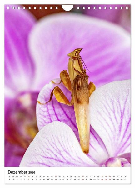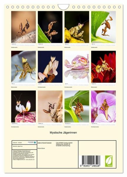 Mystische Jägerinnen lädt Sie ein, die faszinierende Welt der Gottesanbeterinnen zu entdecken. Dieser außergewöhnliche Kalender zeigt die geheimnisvolle Schönheit und Vielfalt dieser beeindruckenden Insekten in 12 hochwertigen Fotografien. Ob kunstvolle Tarnung, präzise Jagd oder anmutige Posen - jede Aufnahme fängt die Eleganz und Einzigartigkeit dieser Meisterinnen des Überlebens ein. Ein Muss für Natur- und Fotografie-Liebhaber, das Staunen und Begeisterung weckt. Lassen Sie sich Monat für Monat von der faszinierenden Welt der Mantis verzaubern!