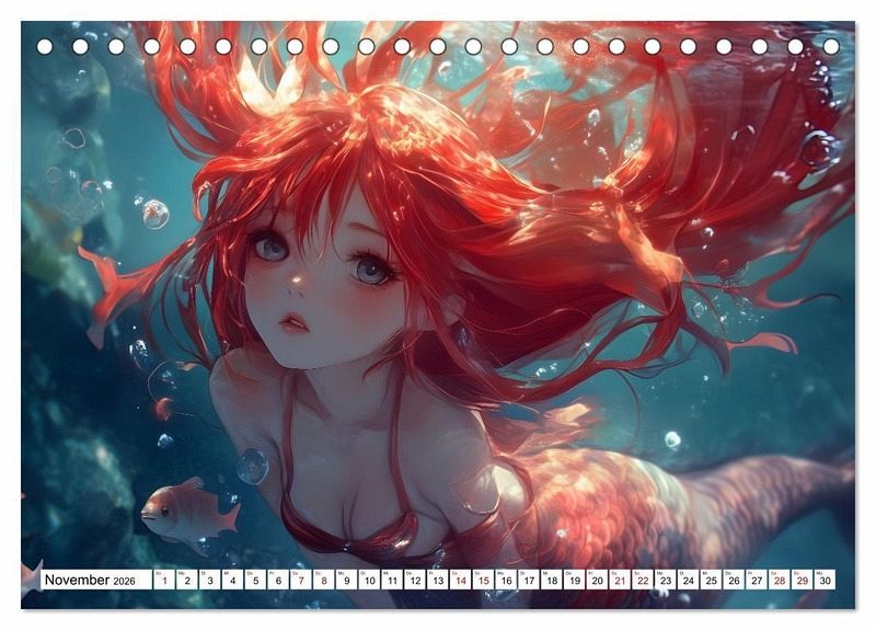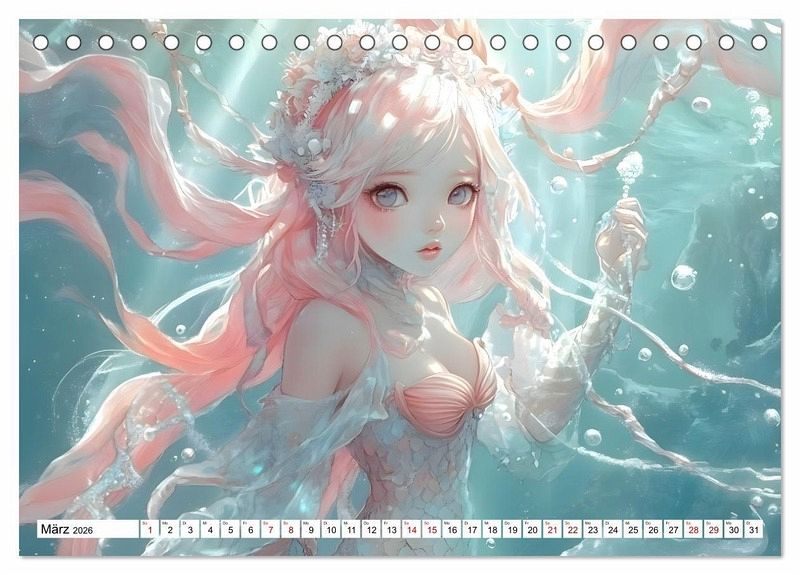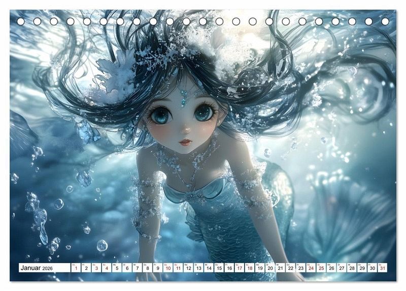 Tauche ein in die verzauberte Welt der Manga-Meerjungfrauen mit diesem fesselnden Kalender. Jeder Monat enthüllt eine einzigartige Unterwasserszene, von frostigen Meeren bis hin zu blühenden Ozeangärten. Erlebe den Zauber der Tiefe mit atemberaubender Kunst, die die Meerjungfrauen-Fantasie zum Leben erweckt.