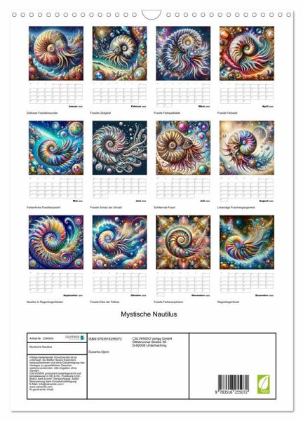 Tauchen Sie ein in die faszinierende Welt von Nautilus mit unserem einzigartigen KI-Kalender. Lassen Sie sich verzaubern von den atemberaubenden Bildern dieses farbenfrohen lebenden Fossils und erleben Sie jeden Tag die Schönheit der Natur. Jedes Bild erweckt den Nautilus zum Leben und verleiht Ihrem Raum eine ganz besondere Atmosphäre.