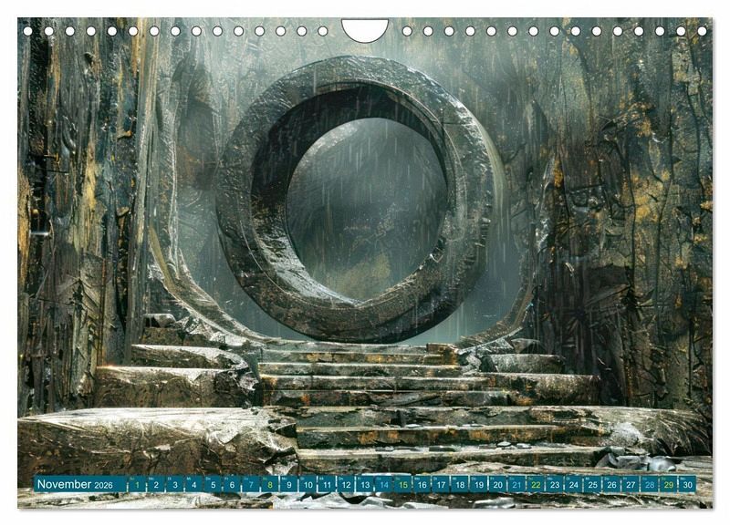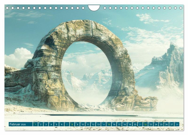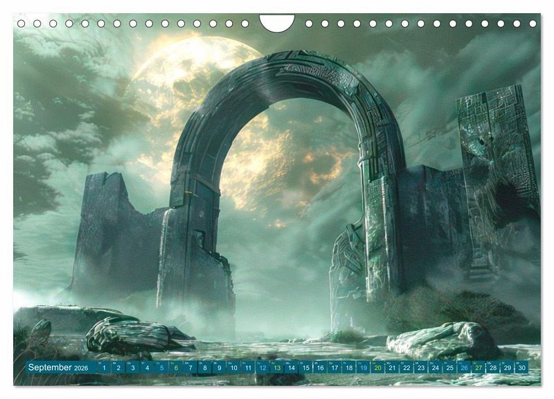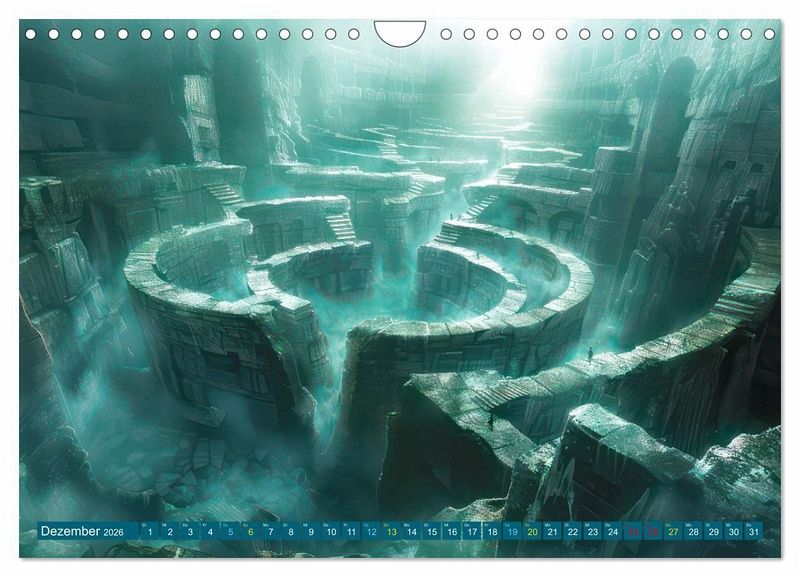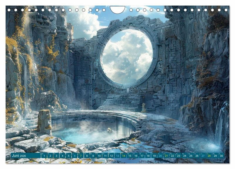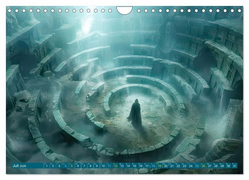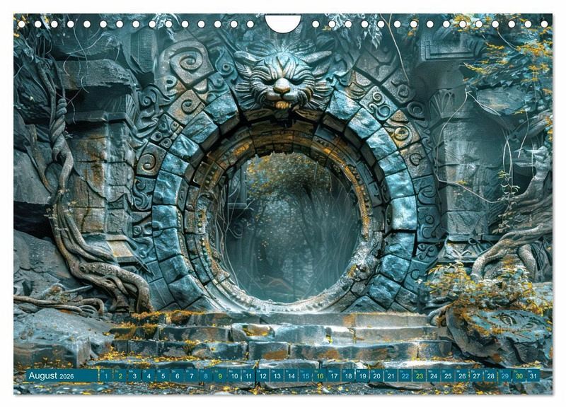 Die Farben Blau und Grün dominieren die mit Hilfe der KI entstandenen Werke und verstärken die geheimnisvolle Atmosphäre. Jeder Monat enthüllt ein neues rätselhaftes Motiv, das Ihre Fantasie anregt und Sie in ferne Welten entführt.
