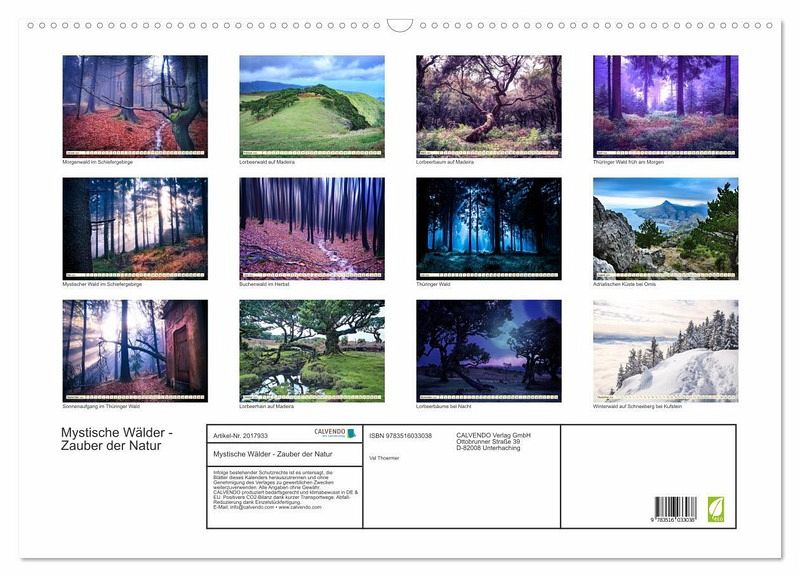 QUALITÄT - Hochwertiger Fotokalender mit 12 wunderschönen Motiven auf lichtbeständigem Bilderdruckpapier, robuste Spiralbindung mit Aufhängebügel.NACHHALTIG - deutliche Abfallreduzierung durch bedarfsgerechte Einzelstückfertigung, umweltfreundliches FSC-zertifiziertes Papier, Produktion in Deutschland, klimabewusste Logistik.PERFEKTES GESCHENK - Kalender für Freunde und Familie, für Kinder und Erwachsene, jung und alt, zu Weihnachten, Geburtstag oder zwischendurch.VIELFALT - Bildkalender in verschiedenen Formaten, z.B. DIN A5, DIN A4, DIN A3 sowie DIN A2. Ob Naturmotiv, Gemälde oder Fotos, ideal für ein persönliches Wohlfühlambiente.Magische Vielfalt der Natur - Wälder, schön und mystisch von Autor(in): Val Thoermer