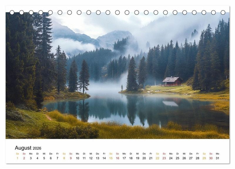 Tauchen Sie ein in eine Welt, in der die Natur flüstert und Nebelschwaden wie Schleier über stillen Wäldern, ruhigen Seen und sanft fließenden Flüssen liegen. Dieser KI-Kalender bringt die Magie dieser verzauberten Landschaften zu Ihnen nach Hause - Orte, an denen die Zeit stillsteht und die Welt in zarte Stille gehüllt ist. Entdecken Sie die Schönheit der Natur in ihrem mystischen Gewand, wenn Sonnenstrahlen sich ihren Weg durch dichte Nebelfelder brechen, Wasserflächen wie in Watte gepackt daliegen und die Welt in eine beruhigende Melancholie tauchen. Lieben Sie Momente der tiefen Ruhe und Harmonie in der Natur, dann ist dieser Kalender perfekt für Sie und alle, die sich nach einem stillen Rückzugsort für ihre Gedanken sehnen.