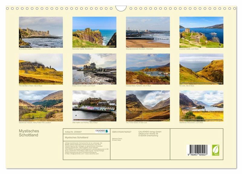 Dieser Kalender versucht, den besonderen Zauber Schottlands und die einzigartige Schönheit und mystische Stimmung dieses Landes wiederzugeben.