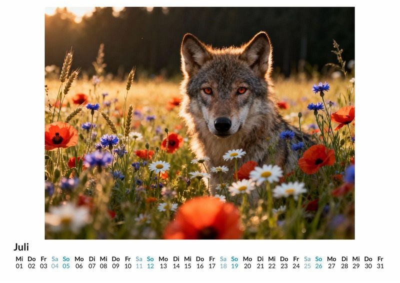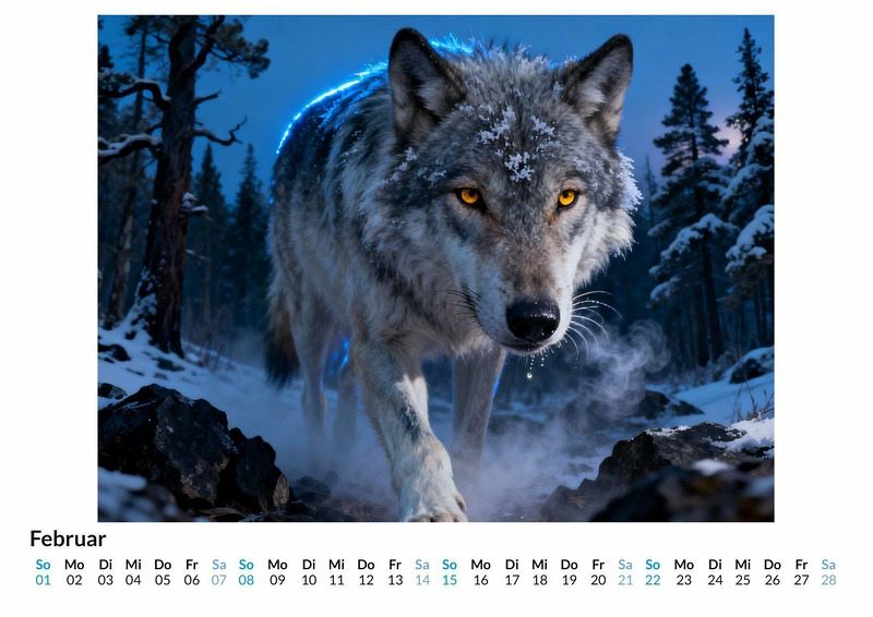 Er streift durch Mythen und Legenden, ein Wesen von wilder Anmut und ungezähmter Kraft. Der Kalender "Mythos Wolf" fängt diese faszinierende Aura in zwölf einzigartigen Motiven ein, die den Betrachter in eine Welt voller Stärke und Mysterium entführen. Dieser Kalender ist eine ideale Wahl für: * Liebhaber von Wölfen und unberührter Natur * Freunde von fantasievollen und symbolträchtigen Bildwelten * Alle, die ein besonderes Geschenk mit tiefgründiger Symbolik suchen Jedes Monatsblatt enthüllt eine neue Facette des Wolfes. Mal zeigt er sich als stiller Wächter nebelverhangener Wälder, mal als kraftvolles Rudeltier unter dem Schein des Mondes. Die Darstellungen sind keine Fotografien oder Gemälde. Sie sind das Ergebnis einer Synthese aus kreativen Impulsen und digitaler Schöpfungskraft, die dem Wesen des Wolfes auf eine neue Art Ausdruck verleiht. Die Kompositionen spielen mit Licht, Schatten und Elementen der Natur, um die geheimnisvolle Seite dieses Tieres zu betonen. Mit dem Kauf dieses Kalenders kann man Folgendes erwarten: * Zwölf geheimnisvolle Wolfsmotive, eines für jeden Monat * Ein praktisches Kalendarium mit Platz für persönliche Einträge * Ein Wandkalender, der das ganze Jahr über als Blickfang dient Der Kalender "Mythos Wolf" ist mehr als nur ein Zeitmesser. Er ist eine Hommage an die ungezähmte Seele der Wildnis. Eine Einladung, die Legende des Wolfes Monat für Monat neu zu entdecken.