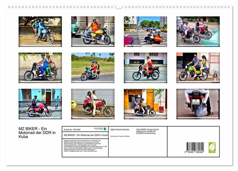 PREMIUM-LINIE - Brillanter Fotokalender mit 12 wunderschönen Motiven, Kunstdruck in Hochglanz in Museumsqualität.QUALITÄT - edle Materialien, stabile Rückwand mit 2 innovativen Einstecktaschen für eine optimale Präsentation an der Wand.NACHHALTIG - deutliche Abfallreduzierung durch bedarfsgerechte Einzelstückfertigung, umweltfreundliches FSC-zertifiziertes Papier, Produktion in Deutschland, klimabewusste Logistik.PERFEKTES GESCHENK - Kalender für Freunde und Familie, für Kinder und Erwachsene, jung und alt, zu Weihnachten, Geburtstag oder zwischendurch.Verschiedene MZ-Modelle unterwegs in Kuba von Autor(in): Henning von Loewis of Menar