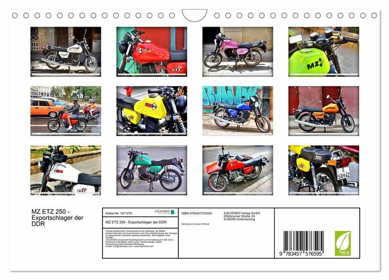 QUALITÄT - Hochwertiger Fotokalender mit 12 wunderschönen Motiven auf lichtbeständigem Bilderdruckpapier, robuste Spiralbindung mit Aufhängebügel.NACHHALTIG - deutliche Abfallreduzierung durch bedarfsgerechte Einzelstückfertigung, umweltfreundliches FSC-zertifiziertes Papier, Produktion in Deutschland, klimabewusste Logistik.PERFEKTES GESCHENK - Kalender für Freunde und Familie, für Kinder und Erwachsene, jung und alt, zu Weihnachten, Geburtstag oder zwischendurch.VIELFALT - Bildkalender in verschiedenen Formaten, z.B. DIN A5, DIN A4, DIN A3 sowie DIN A2. Ob Naturmotiv, Gemälde oder Fotos, ideal für ein persönliches Wohlfühlambiente.Der Motorrad-Bestseller MZ ETZ 250 in Kuba von Autor(in): Henning von Loewis of Menar