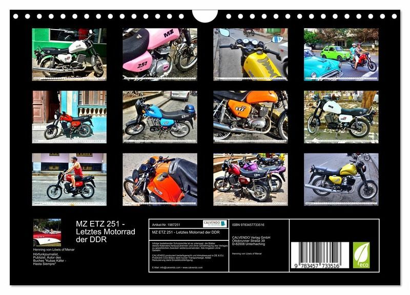 QUALITÄT - Hochwertiger Fotokalender mit 12 wunderschönen Motiven auf lichtbeständigem Bilderdruckpapier, robuste Spiralbindung mit Aufhängebügel.NACHHALTIG - deutliche Abfallreduzierung durch bedarfsgerechte Einzelstückfertigung, umweltfreundliches FSC-zertifiziertes Papier, Produktion in Deutschland, klimabewusste Logistik.PERFEKTES GESCHENK - Kalender für Freunde und Familie, für Kinder und Erwachsene, jung und alt, zu Weihnachten, Geburtstag oder zwischendurch.VIELFALT - Bildkalender in verschiedenen Formaten, z.B. DIN A5, DIN A4, DIN A3 sowie DIN A2. Ob Naturmotiv, Gemälde oder Fotos, ideal für ein persönliches Wohlfühlambiente.Das letzte in der DDR produzierte Motorrad auf Kuba von Autor(in): Henning von Loewis of Menar