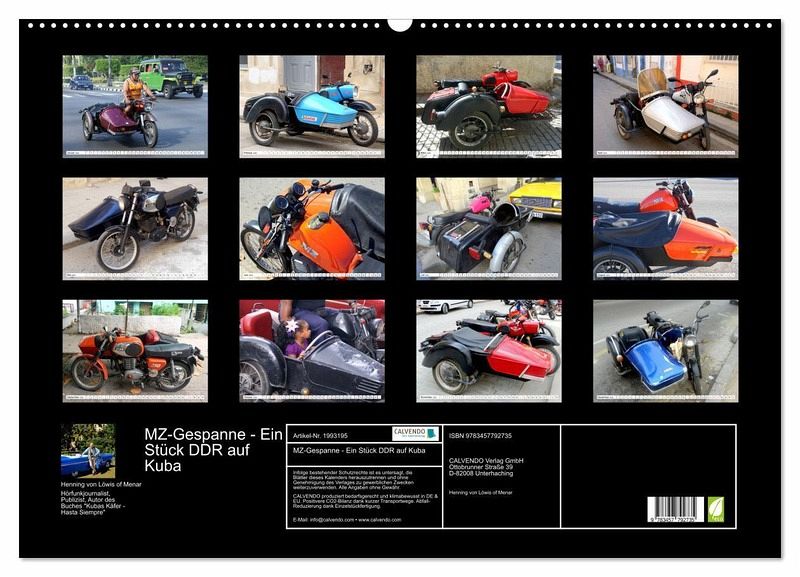 QUALITÄT - Hochwertiger Fotokalender mit 12 wunderschönen Motiven auf lichtbeständigem Bilderdruckpapier, robuste Spiralbindung mit Aufhängebügel.NACHHALTIG - deutliche Abfallreduzierung durch bedarfsgerechte Einzelstückfertigung, umweltfreundliches FSC-zertifiziertes Papier, Produktion in Deutschland, klimabewusste Logistik.PERFEKTES GESCHENK - Kalender für Freunde und Familie, für Kinder und Erwachsene, jung und alt, zu Weihnachten, Geburtstag oder zwischendurch.VIELFALT - Bildkalender in verschiedenen Formaten, z.B. DIN A5, DIN A4, DIN A3 sowie DIN A2. Ob Naturmotiv, Gemälde oder Fotos, ideal für ein persönliches Wohlfühlambiente.Motorräder der Marke MZ mit Seitenwagen in Kuba von Autor(in): Henning von Loewis of Menar