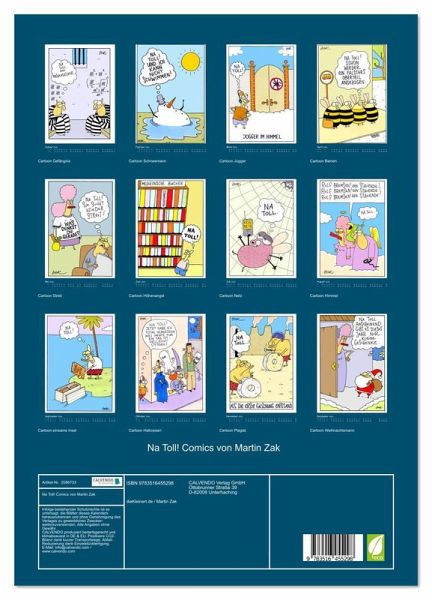 PREMIUM-LINIE - Brillanter Fotokalender mit 12 wunderschönen Motiven, Kunstdruck in Hochglanz in Museumsqualität.QUALITÄT - edle Materialien, stabile Rückwand mit 2 innovativen Einstecktaschen für eine optimale Präsentation an der Wand.NACHHALTIG - deutliche Abfallreduzierung durch bedarfsgerechte Einzelstückfertigung, umweltfreundliches FSC-zertifiziertes Papier, Produktion in Deutschland, klimabewusste Logistik.PERFEKTES GESCHENK - Kalender für Freunde und Familie, für Kinder und Erwachsene, jung und alt, zu Weihnachten, Geburtstag oder zwischendurch.Monatskalender mit Cartoons von Martin Zak von Autor(in): Jutta Kleinert