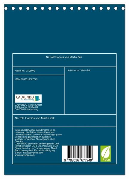 QUALITÄT - Hochwertiger Fotokalender mit 12 wunderschönen Motiven auf lichtbeständigem Bilderdruckpapier, robuste Spiralbindung.NACHHALTIG - deutliche Abfallreduzierung durch bedarfsgerechte Einzelstückfertigung, umweltfreundliches FSC-zertifiziertes Papier, Produktion in Deutschland, klimabewusste Logistik.PERFEKTES GESCHENK - Kalender für Freunde und Familie, für Kinder und Erwachsene, jung und alt, zu Weihnachten, Geburtstag oder zwischendurch.VIELFALT - Bildkalender in verschiedenen Formaten, z.B. DIN A5, DIN A4, DIN A3 sowie DIN A2. Ob Naturmotiv, Gemälde oder Fotos, ideal für ein persönliches Wohlfühlambiente.Monatskalender mit Cartoons von Martin Zak von Autor(in): Jutta Kleinert