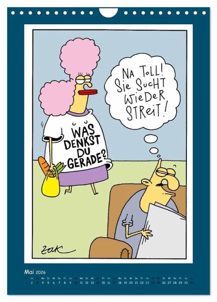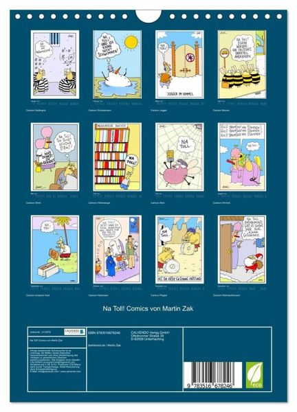 QUALITÄT - Hochwertiger Fotokalender mit 12 wunderschönen Motiven auf lichtbeständigem Bilderdruckpapier, robuste Spiralbindung mit Aufhängebügel.NACHHALTIG - deutliche Abfallreduzierung durch bedarfsgerechte Einzelstückfertigung, umweltfreundliches FSC-zertifiziertes Papier, Produktion in Deutschland, klimabewusste Logistik.PERFEKTES GESCHENK - Kalender für Freunde und Familie, für Kinder und Erwachsene, jung und alt, zu Weihnachten, Geburtstag oder zwischendurch.VIELFALT - Bildkalender in verschiedenen Formaten, z.B. DIN A5, DIN A4, DIN A3 sowie DIN A2. Ob Naturmotiv, Gemälde oder Fotos, ideal für ein persönliches Wohlfühlambiente.Monatskalender mit Cartoons von Martin Zak von Autor(in): Jutta Kleinert