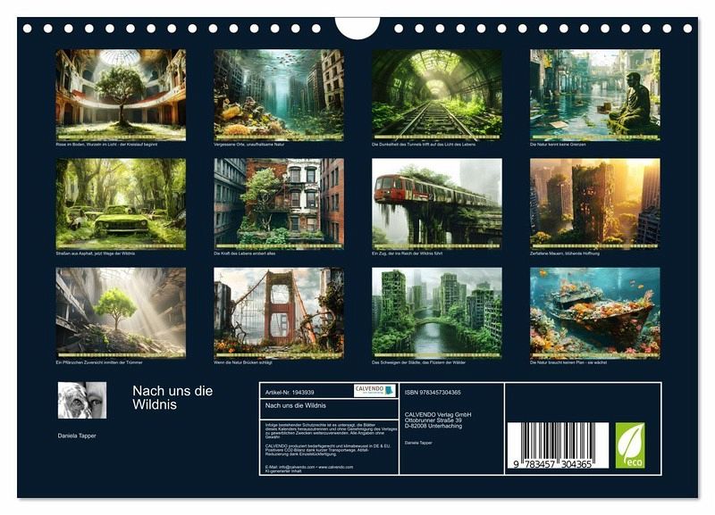 Entdecken Sie atemberaubende Visionen einer Welt, in der die Natur sich zurückholt, was der Mensch hinterlassen hat. Dieser Kalender zeigt spektakuläre Szenen verlassener Städte, Schiffswracks und Ruinen, überwuchert von grüner Pracht - geschaffen mit modernster KI-Technologie. Lassen Sie sich von den fotorealistischen Bildern faszinieren, die Zerstörung und Hoffnung zugleich zeigen. Ein eindrucksvoller Blick auf die Stärke der Natur und ihre Fähigkeit, Neues zu erschaffen. Perfekt für alle, die Schönheit im Unvorstellbaren suchen!