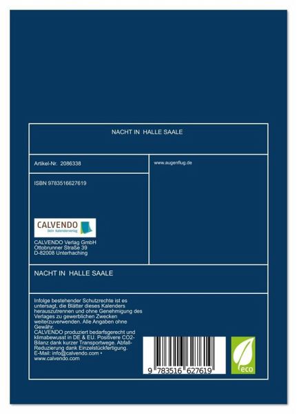 QUALITÄT - Hochwertiger Fotokalender mit 12 wunderschönen Motiven auf lichtbeständigem Bilderdruckpapier, robuste Spiralbindung.NACHHALTIG - deutliche Abfallreduzierung durch bedarfsgerechte Einzelstückfertigung, umweltfreundliches FSC-zertifiziertes Papier, Produktion in Deutschland, klimabewusste Logistik.PERFEKTES GESCHENK - Kalender für Freunde und Familie, für Kinder und Erwachsene, jung und alt, zu Weihnachten, Geburtstag oder zwischendurch.VIELFALT - Bildkalender in verschiedenen Formaten, z.B. DIN A5, DIN A4, DIN A3 sowie DIN A2. Ob Naturmotiv, Gemälde oder Fotos, ideal für ein persönliches Wohlfühlambiente.Nachtaufnahmen der Stadt Halle Saale von Autor(in): Steffen Schellhorn