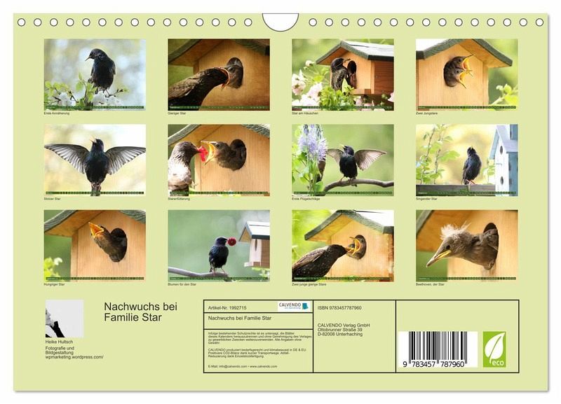 QUALITÄT - Hochwertiger Fotokalender mit 12 wunderschönen Motiven auf lichtbeständigem Bilderdruckpapier, robuste Spiralbindung mit Aufhängebügel.NACHHALTIG - deutliche Abfallreduzierung durch bedarfsgerechte Einzelstückfertigung, umweltfreundliches FSC-zertifiziertes Papier, Produktion in Deutschland, klimabewusste Logistik.PERFEKTES GESCHENK - Kalender für Freunde und Familie, für Kinder und Erwachsene, jung und alt, zu Weihnachten, Geburtstag oder zwischendurch.VIELFALT - Bildkalender in verschiedenen Formaten, z.B. DIN A5, DIN A4, DIN A3 sowie DIN A2. Ob Naturmotiv, Gemälde oder Fotos, ideal für ein persönliches Wohlfühlambiente.Brutzeit der Stare von Autor(in): Heike Hultsch