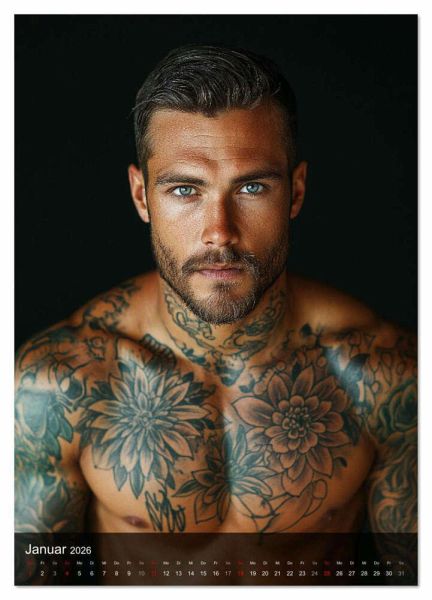 Erotik pur: Heiße Körper, sinnliche Tattoos und nackte Männer - dieser Männerkalender zeigt tätowierte Männer von ihrer verführerischsten Seite. Ob definierte Oberkörper mit Sixpack, kunstvolle Rücken-Tattoos oder ein frecher Blick auf den tätowierten Hintern eines Mannes: jede Seite ist ein erotisches Kunstwerk. Ideal für alle, die auf nackte Haut, starke Tattoos und sexy Männer stehen. Von stilvoll bis provokant - perfekt für Tattoo-Fans, Ästhetik-Liebhaber und alle, die tätowierte Männerkörper lieben. Auch als Geschenk für Tattoowierer und Tattoowiererin, oder als Geschenk für den schwulen Freund ein echter Volltreffer. Dieser mit KI-generierte Erotikkalender für Frauen vereint Erotik, Stil und Tattoo-Kunst - für aufregende Momente, Tag für Tag.