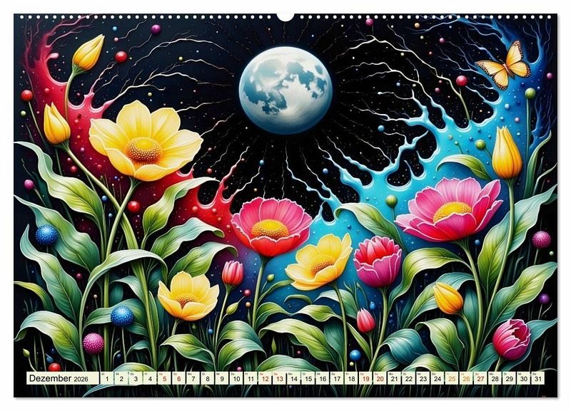 Tauchen Sie ein in die wundersame Welt eines wunderschönen Kalenders, in der künstliche Intelligenz auf unvergleichliche Blumenschönheit trifft und sie zum Leben erwachen. Jedes Bild verkörpert die Anmut der Blumen mit ihrer zauberhaften nächtlichen Erscheinung und ihrer geheimnisvollen Aura. Fangen Sie die Essenz des Blumenmärchens ein und verleihen Ihrem Raum eine magische Atmosphäre, oder schenken Sie es als perfektes Geschenk an Ihre Freunde die Blumenliebhaber sind.