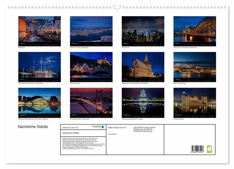 Genießen Sie Monat für Monat das Flair von beleuchteten Städten und Sehenswürdigkeiten bei Dunkelheit. Lassen Sie sich von dieser fotografischen Weltreise durch das Jahr begleiten.