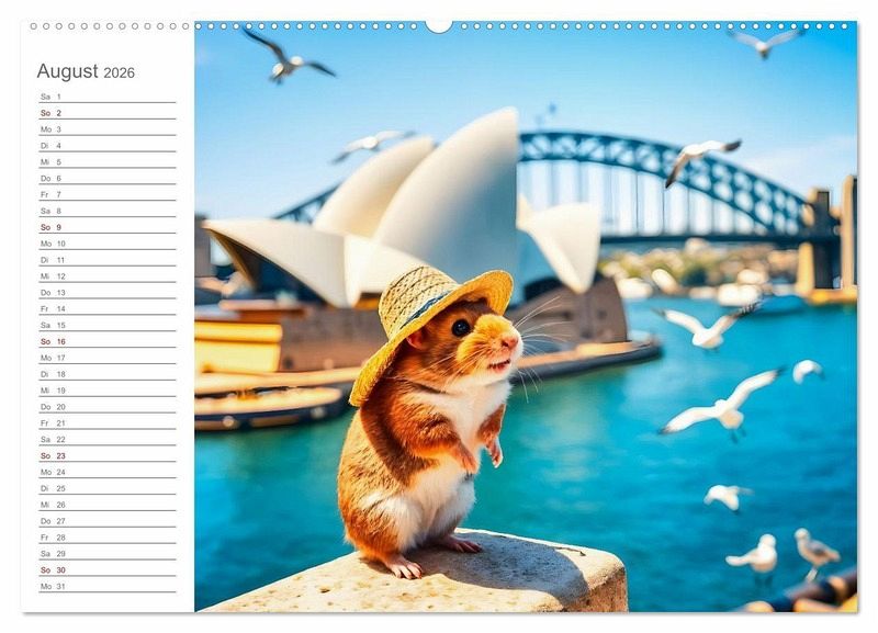 Mach dich bereit für ein Jahr voller Flausch und Fernweh! Dieser Kalender begleitet einen zuckersüßen kleinen Hamster auf seiner ganz persönlichen Weltreise - vom Eiffelturm bis zu den Pyramiden von Gizeh, vom Big Ben bis an den Zuckerhut. In jedem Monat entdeckt er ein neues Reiseziel - immer mit neugierigen Knopfaugen, vollen Backentaschen und ganz viel Charme.