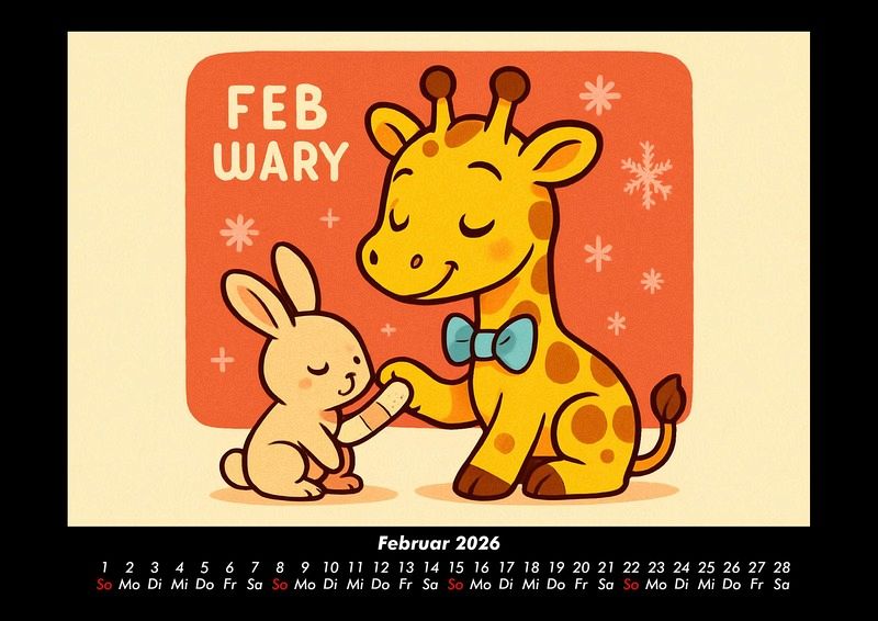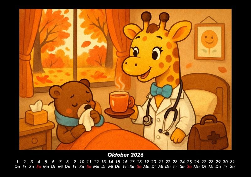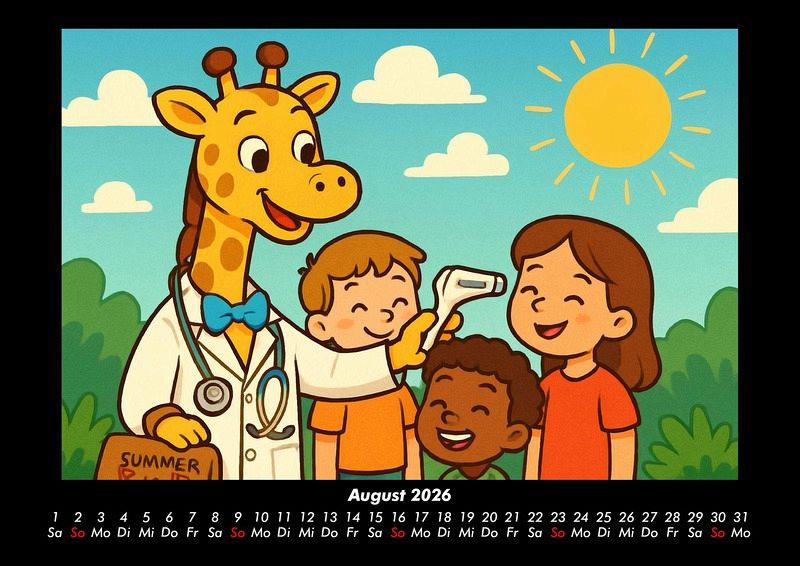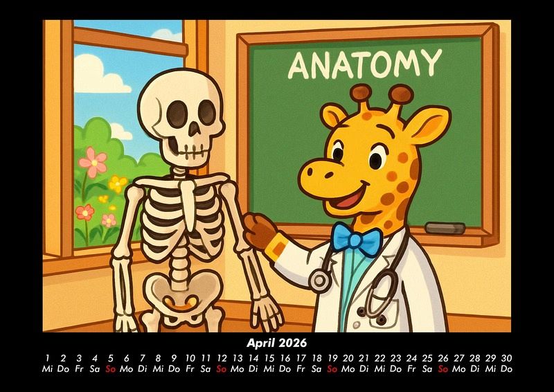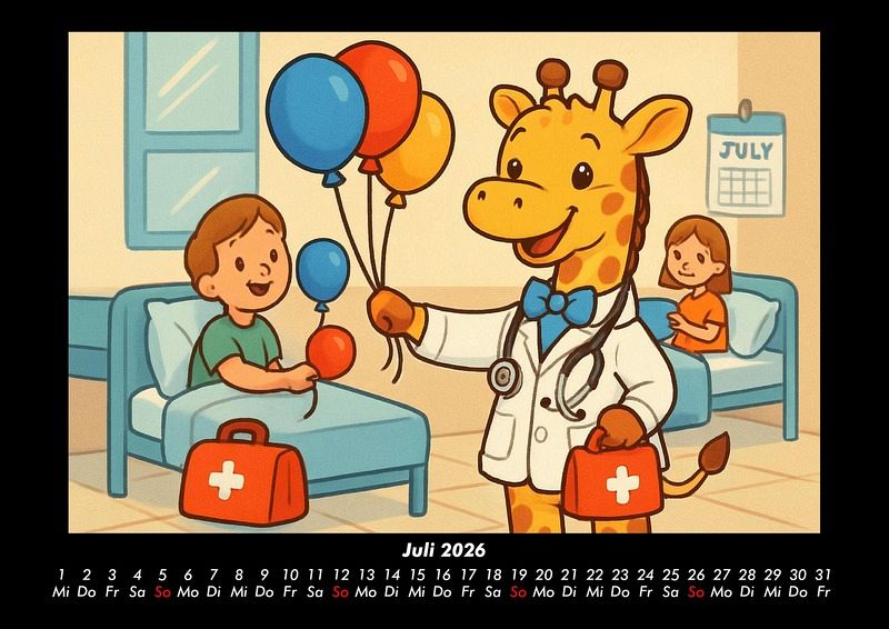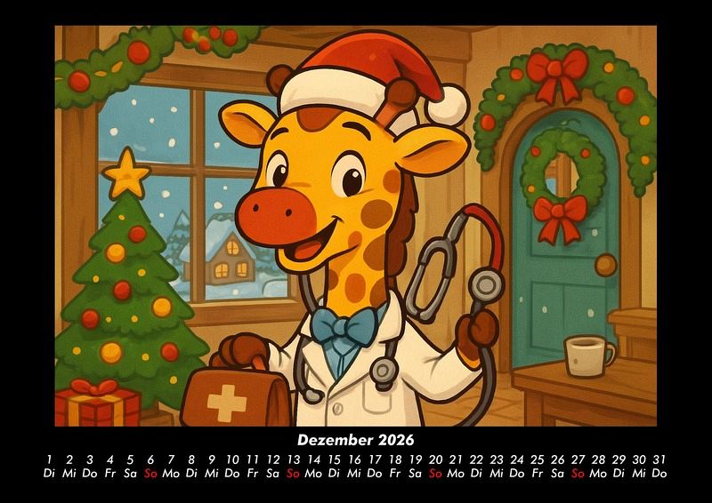 Nala entdeckt ihren Beruf als Ärztin 2026 Motivkalender DIN A3 In diesem liebevoll gestalteten Kalender begleiten wir Nala, die freundliche Giraffe mit ihrem fröhlichen Lächeln, auf ihrem Weg zur Ärztin. Monat für Monat entdeckt sie neue Facetten ihres Traumberufs: vom Helfen in der Tierklinik über spannende Einsätze im Krankenhaus bis hin zu liebevollen Momenten mit Patienten. Mit farbenfrohen Illustrationen zeigt Nala, dass Fürsorge, Wissen und ein großes Herz die besten Zutaten für eine gute Ärztin sind. Ein inspirierender Kalender voller Wärme, Freundschaft und Motivation für Groß und Klein. Vero-Kalender Kids zeigen liebevoll gestaltete Monatskalender mit bunten Bild-Motiven tierischer Freunde, die gemeinsam spannende Abenteuer erleben und die Welt entdecken. Ob in fernen Ländern, zwischen berühmten Sehenswürdigkeiten oder in magischen Landschaften - die fröhlichen Tiercharaktere begleiten Kinder Monat für Monat durch ein Jahr voller Fantasie, Freude und Freundschaft. Gedruckt werden die Kinder-Kalender aus dem Vero Verlag auf hochwertigem Kalenderbogen in Premium-Qualität und in verschiedenen Größen.
