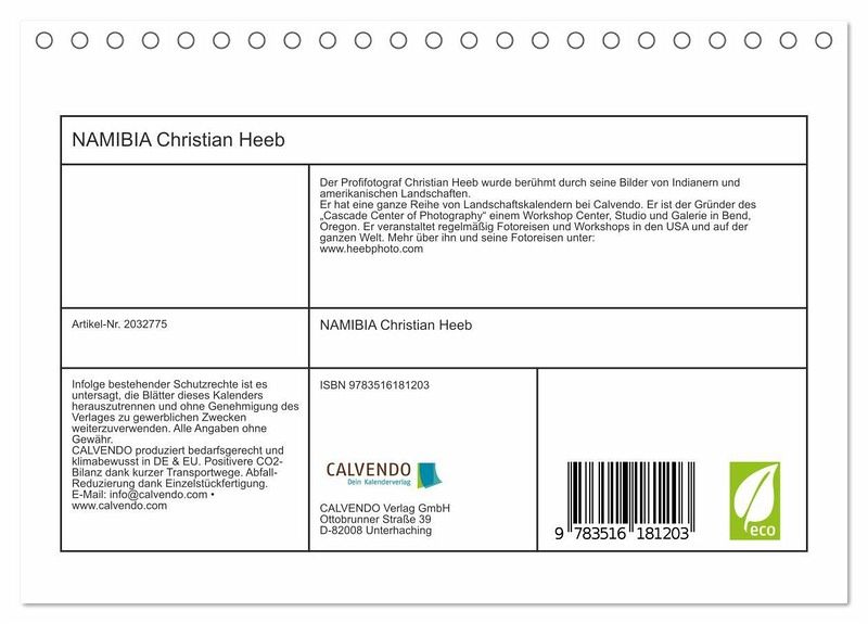 Grandiose Landschaften und Tiere von Christian Heeb. Vom Etosha National Park bis zum Caprivi mit fantastischen Naturlandschaften und den Tieren von Namibia.