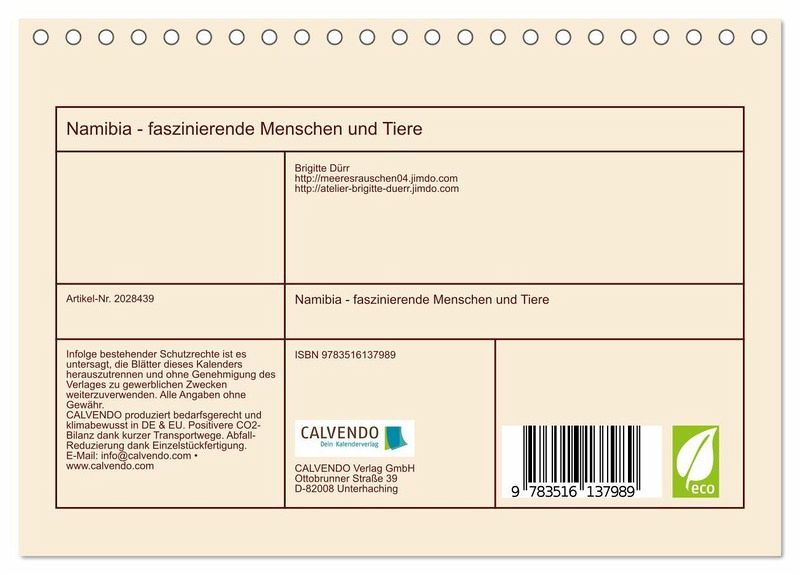 QUALITÄT - Hochwertiger Fotokalender mit 12 wunderschönen Motiven auf lichtbeständigem Bilderdruckpapier, robuste Spiralbindung.NACHHALTIG - deutliche Abfallreduzierung durch bedarfsgerechte Einzelstückfertigung, umweltfreundliches FSC-zertifiziertes Papier, Produktion in Deutschland, klimabewusste Logistik.PERFEKTES GESCHENK - Kalender für Freunde und Familie, für Kinder und Erwachsene, jung und alt, zu Weihnachten, Geburtstag oder zwischendurch.VIELFALT - Bildkalender in verschiedenen Formaten, z.B. DIN A5, DIN A4, DIN A3 sowie DIN A2. Ob Naturmotiv, Gemälde oder Fotos, ideal für ein persönliches Wohlfühlambiente.Menschen und Tiere Namibias - faszinierende, fremde Ansichten von Autor(in): Brigitte Dürr