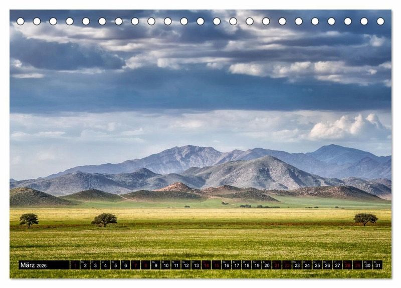 Erleben Sie Namibia in all seiner beeindruckenden Vielfalt. Dieser Fotokalender zeigt die atemberaubenden Landschaften des Landes, von den rotgoldenen Dünen der Namib-Wüste bis zu den majestätischen Epupa-Fällen. Die Gegensätze zwischen Dürre und sattem Grün, die bizarren Felsen und unendlichen Weiten verzaubern auch abseits der reichen Tierwelt.