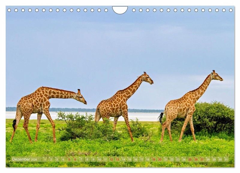 Ob Sie nun von der Größe der Elefanten beeindruckt sind oder von der Anmut der Raubkatzen, unser Kalender bietet Ihnen jeden Monat neue Einblicke und Inspiration. Lassen Sie sich von der wilden Schönheit Namibias verzaubern und genießen Sie das ganze Jahr über die unvergleichliche Pracht unserer Tierwelt.