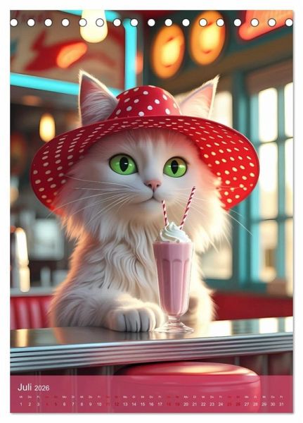 "Naschkatzen - Süße Samtpfoten auf Kalorienjagd" ist ein liebevoll gestalteter Kalender für alle, die Katzen und süße Leckereien lieben. Charmant und verspielt präsentieren sich vermenschlichte Samtpfoten in niedlicher Kleidung beim Naschen von Cupcakes, Eis, Kuchen und Lollis - an Orten wie dem Café, im Park, auf der Strandpromenade, in der heimischen Küche oder am liebevoll gedeckten Kaffeetisch. Ein humorvoller und detailreicher Hingucker für Küche, Büro oder Lieblingsplatz - zum Schmunzeln und Genießen! KI hat die Bilderstellung unterstützt.