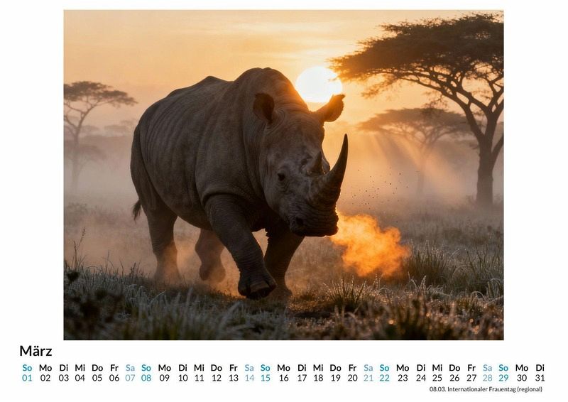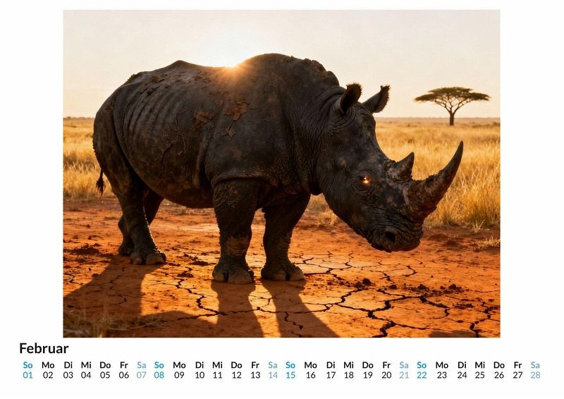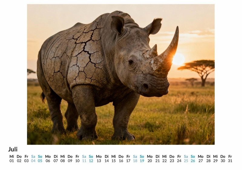 Sie wirken wie Relikte aus einer längst vergangenen Epoche, gepanzerte Kolosse, die mit stoischer Ruhe durch die Savannen ziehen. Ihre Präsenz ist unverkennbar, ein Symbol für ungezähmte Natur und urwüchsige Kraft. Der Kalender "Nashorn" widmet sich diesen faszinierenden Überlebenskünstlern unter dem Motto des urzeitlich anmutenden Giganten. Dieser Kalender ist eine gute Wahl: * Für Liebhaber von Wildtieren und unberührter Natur. * Für Menschen, die eine Vorliebe für kraftvolle Tiermotive haben. * Als besonderer Wandschmuck für das Büro oder Zuhause. Zwölf Monatsblätter zeigen die Dickhäuter in verschiedenen Facetten. Mal im sanften Licht der Morgensonne, mal als Porträt, das die faltige Textur ihrer Haut und die archaische Form ihres Kopfes einfängt. Jedes Monatsbild wurde durch das Zusammenspiel von menschlicher Vision und computergestützter Kreativität erschaffen, um die einzigartige Ästhetik dieser Tiere zu betonen. Die Fotografien konzentrieren sich auf die Details, die den urzeitlichen Charakter der Nashörner ausmachen. Was der Kalender bietet: * Zwölf Monatsmotive im Großformat. * Ein praktisches Kalendarium für Termine und Notizen. * Ein Jahresbegleiter, der die Stärke der Natur ins Haus bringt. Der Kalender "Nashorn" ist eine Hommage an die majestätische und ruhige Kraft dieser Giganten. Er fängt die besondere Aura ein, die diese Tiere umgibt. Eine Entdeckungsreise durch die zwölf Motive lohnt sich, um die Welt dieser urzeitlich anmutenden Geschöpfe zu erleben.