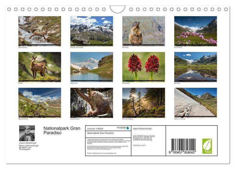 QUALITÄT - Hochwertiger Fotokalender mit 12 wunderschönen Motiven auf lichtbeständigem Bilderdruckpapier, robuste Spiralbindung mit Aufhängebügel.NACHHALTIG - deutliche Abfallreduzierung durch bedarfsgerechte Einzelstückfertigung, umweltfreundliches FSC-zertifiziertes Papier, Produktion in Deutschland, klimabewusste Logistik.PERFEKTES GESCHENK - Kalender für Freunde und Familie, für Kinder und Erwachsene, jung und alt, zu Weihnachten, Geburtstag oder zwischendurch.VIELFALT - Bildkalender in verschiedenen Formaten, z.B. DIN A5, DIN A4, DIN A3 sowie DIN A2. Ob Naturmotiv, Gemälde oder Fotos, ideal für ein persönliches Wohlfühlambiente.Bilderreise zum Gran Paradiso, dem ersten Nationalpark Italiens und zur Urheimat des Alpensteinbocks. von Autor(in): Johann Schörkhuber