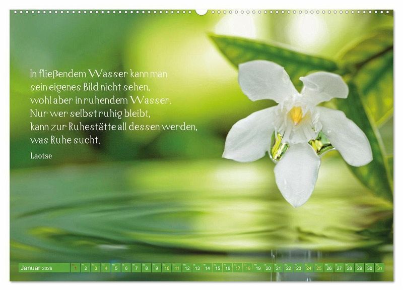 Ein Naturkalender mit Weisheiten und Aphorismen europäischer und asiatischer Geistesgrößen. Folgen Sie diesen Denkern, Schriftgelehrten und Künstlern auf dem Pfad zu innerer Ruhe, Ausgeglichenheit und Achtsamkeit. Die Sinnsprüche von Laotse, Schiller, Nietzsche, Konfuzius und vieler weiterer werden stimmungsvoll mit Fotografien aus Fernost illustriert. Ob im Büro, in der Küche oder im Wohnbereich, der Kalender ist das perfekte Geschenk für gute Freunde und Kollegen und natürlich für sich selbst.