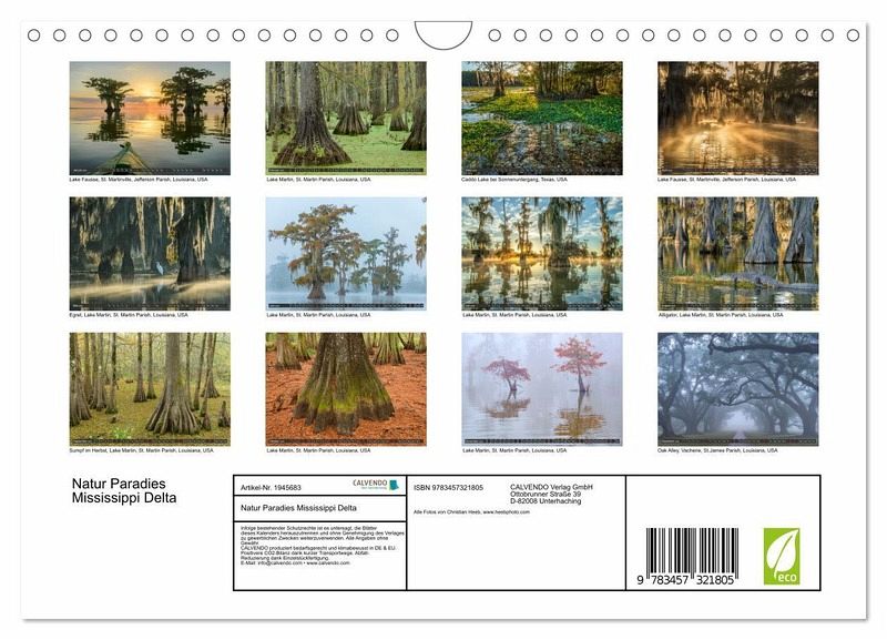 QUALITÄT - Hochwertiger Fotokalender mit 12 wunderschönen Motivenauf lichtbeständigem Bilderdruckpapier, robuste Spiralbindung mit Aufhängebügel.NACHHALTIG - deutliche Abfallreduzierung durch bedarfsgerechte Einzelstückfertigung, umweltfreundliches FSC-zertifiziertes Papier, Produktion in Deutschland, klimabewusste Logistik.PERFEKTES GESCHENK - Kalender für Freunde und Familie, für Kinder und Erwachsene, jung und alt, zu Weihnachten, Geburtstag oder zwischendurch.VIELFALT - Bildkalender in verschiedenen Formaten, z.B. DIN A5, DIN A4, DIN A3 sowie DIN A2. Ob Naturmotiv, Gemälde oder Fotos, ideal für ein persönliches Wohlfühlambiente.Entdecken Sie die Schönheit der Natur: Unser Wandkalender mit atemberaubenden Landschaftsfotos von Zypressen und Sümpfen. von Autor(in): Christian Heeb