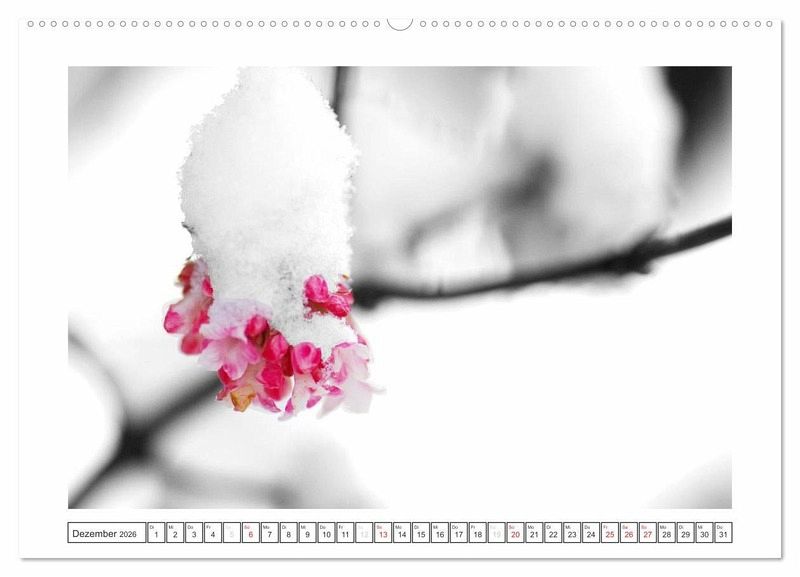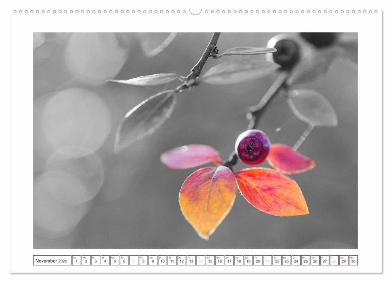 Naturfotografie mal anders. Schwarz-weiß mit kleinen Farbakzenten läßt diesen Jahreskalender zum absoluten Highlight werden. Die schwarz-weiß Fotografien ziehen die Blicke magisch an, doch der kleine Farbklecks im Bild zaubert dem Kalender etwas magisches an. Blumen, Tiere und Landschaftsfotografien sprechen hier für sich.