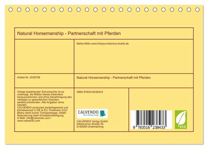 QUALITÄT - Hochwertiger Fotokalender mit 12 wunderschönen Motiven auf lichtbeständigem Bilderdruckpapier, robuste Spiralbindung.NACHHALTIG - deutliche Abfallreduzierung durch bedarfsgerechte Einzelstückfertigung, umweltfreundliches FSC-zertifiziertes Papier, Produktion in Deutschland, klimabewusste Logistik.PERFEKTES GESCHENK - Kalender für Freunde und Familie, für Kinder und Erwachsene, jung und alt, zu Weihnachten, Geburtstag oder zwischendurch.VIELFALT - Bildkalender in verschiedenen Formaten, z.B. DIN A5, DIN A4, DIN A3 sowie DIN A2. Ob Naturmotiv, Gemälde oder Fotos, ideal für ein persönliches Wohlfühlambiente.Faszinierende Partnerschaft zwischen Mensch und Pferd von Autor(in): Meike Bölts