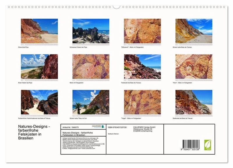 PREMIUM-LINIE - Brillanter Fotokalender mit 12 wunderschönen Motiven, Kunstdruck in Hochglanz in Museumsqualität.QUALITÄT - edle Materialien, stabile Rückwand mit 2 innovativen Einstecktaschen für eine optimale Präsentation an der Wand.NACHHALTIG - deutliche Abfallreduzierung durch bedarfsgerechte Einzelstückfertigung, umweltfreundliches FSC-zertifiziertes Papier, Produktion in Deutschland, klimabewusste Logistik.PERFEKTES GESCHENK - Kalender für Freunde und Familie, für Kinder und Erwachsene, jung und alt, zu Weihnachten, Geburtstag oder zwischendurch.Beeindruckend farbenfrohe Steilküsten im Nordosten Brasiliens von Autor(in): Stefanie Steiner