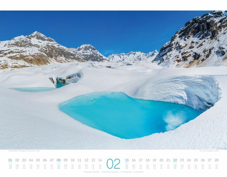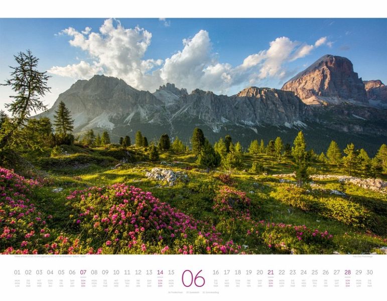 Die beeindruckende Landschaft des alpinen Raumes in all ihrer natürlichen Pracht: Monat für Monat werden die markanten Gipfel, die tiefen Täler und die vielfältigen Ökosysteme dieser einzigartigen Bergregion abgebildet. Dieser Kalender ist für alle gedacht, die sich von der rauen Schönheit der Alpen angezogen fühlen und die die Stille und Weite dieser Landschaft schätzen. Er bietet eine Auswahl an Fotografien, die die Alpen nicht nur als ein beliebtes Reiseziel, sondern auch als einen Ort der Ruhe und Kraft darstellen. Ideal für Bergbegeisterte und Naturverbundene, die die Schönheit der Alpen jeden Tag des Jahres genießen möchten.