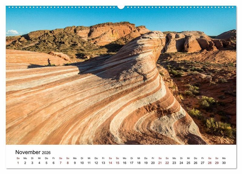 Zwischen Los Angeles und Las Vegas zieht sich von Nord nach Süd die Sierra Nevada hin. Auf der Westseite liegen der Yosemite- und Sequoia-Nationalpark, auf der Ostseite Mammoth Lakes, Bodie, der Mono Lake, die Alabama Hills und das Tal des Todes. In der Nähe von Las Vegas befinden sich noch das Valley of Fire und Little Finland. Die schönsten Fotos aus diesen Regionen wurden in einem Kalender zusammengefasst