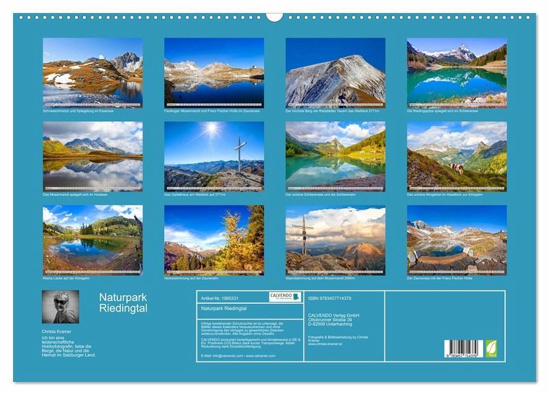 QUALITÄT - Hochwertiger Fotokalender mit 12 wunderschönen Motiven auf lichtbeständigem Bilderdruckpapier, robuste Spiralbindung mit Aufhängebügel.NACHHALTIG - deutliche Abfallreduzierung durch bedarfsgerechte Einzelstückfertigung, umweltfreundliches FSC-zertifiziertes Papier, Produktion in Deutschland, klimabewusste Logistik.PERFEKTES GESCHENK - Kalender für Freunde undFamilie, für Kinder und Erwachsene, jung und alt, zu Weihnachten, Geburtstag oder zwischendurch.VIELFALT - Bildkalender in verschiedenen Formaten, z.B. DIN A5, DIN A4, DIN A3 sowie DIN A2. Ob Naturmotiv, Gemälde oder Fotos, ideal für ein persönliches Wohlfühlambiente.Impressionen im Riedingtal in Zederhaus im Lungau von Autor(in): Christa Kramer