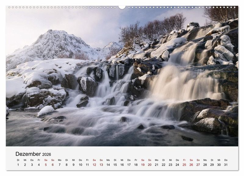 Dezember: Wasserfall auf den Lofoten - Norwegen